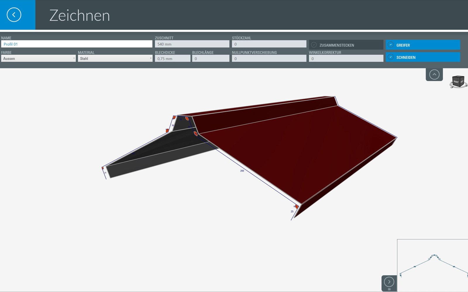 V – MOBILE offers your customers and partners an unprecedented innovative service tool that allows them to place orders 24 hours a day, 365 days a year. With the main license, you can grant access to this unique service tool not only internally but also to customers and partners. Your customers and partners can then create profiles themselves and specify the material type, thickness and quantity. Of course, these profiles can then be sent directly to you. A unique service that none of your customers will want to do without!